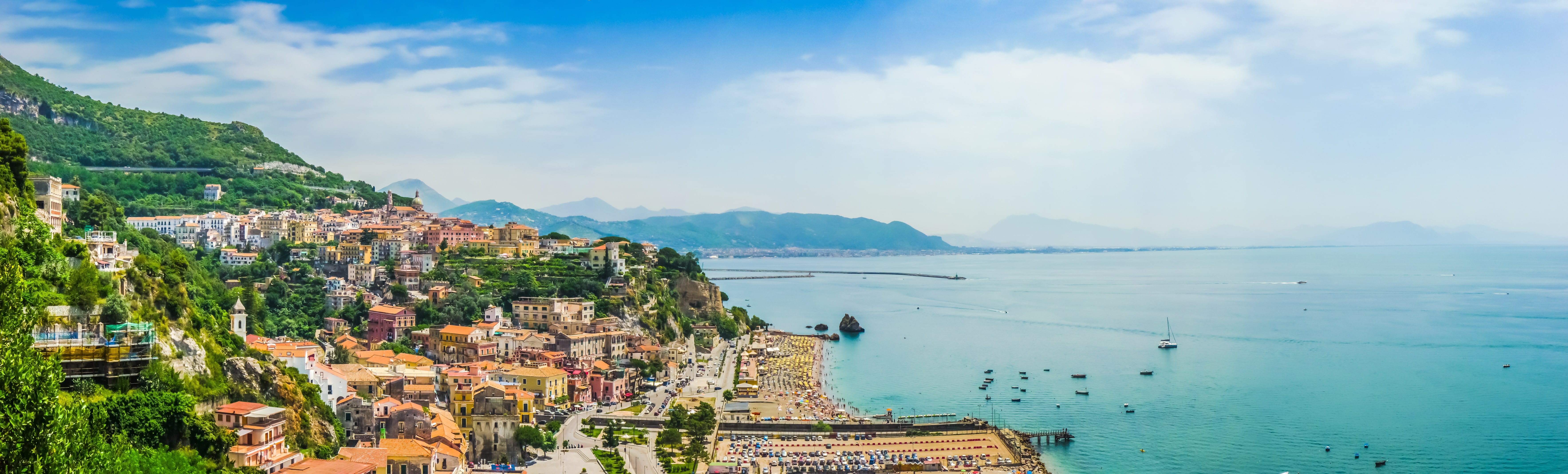 Amalfikysten er en av Europas mest spektakulære kystlinjer og ligger like sør for Napoli, mellom Sorrento og Salerno. Ferierer du langs Amalfikysten er du omringet av spektakulær natur med bratte, grønnkledde fjellsider, dalfører, raviner, krystallklart hav, strender, vakker utsikt, trivelige byer og pastellfargede landsbyer, smale veier som slynger seg langs havet og til de høytliggende landsbyene, spennende utfluktsmål og lokale delikatesser. På Amalfikysten finnes noe for alle, både familier og par; for romantiske par på bryllupsreise, dere som ønsker en innholdsrik ferie med masse utflukter og aktivitet og dere som ønsker en sydentur i spektakulære, vakre omgivelser.
